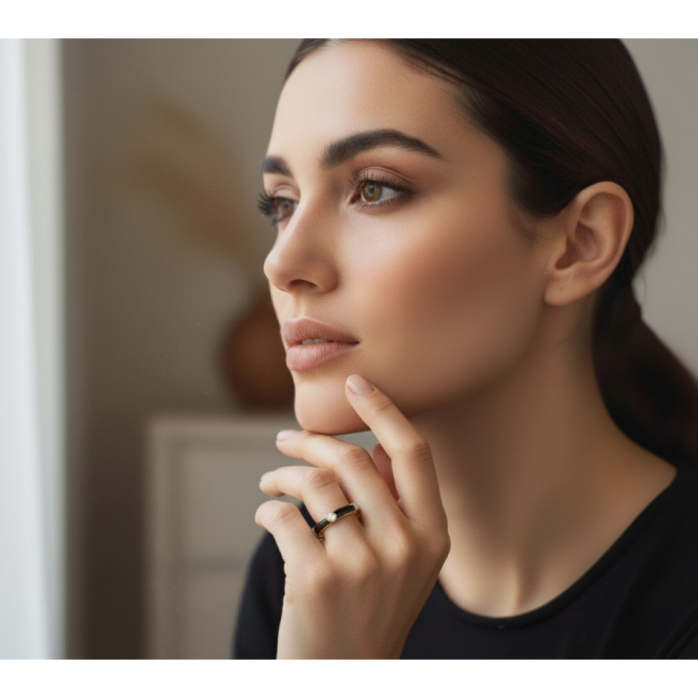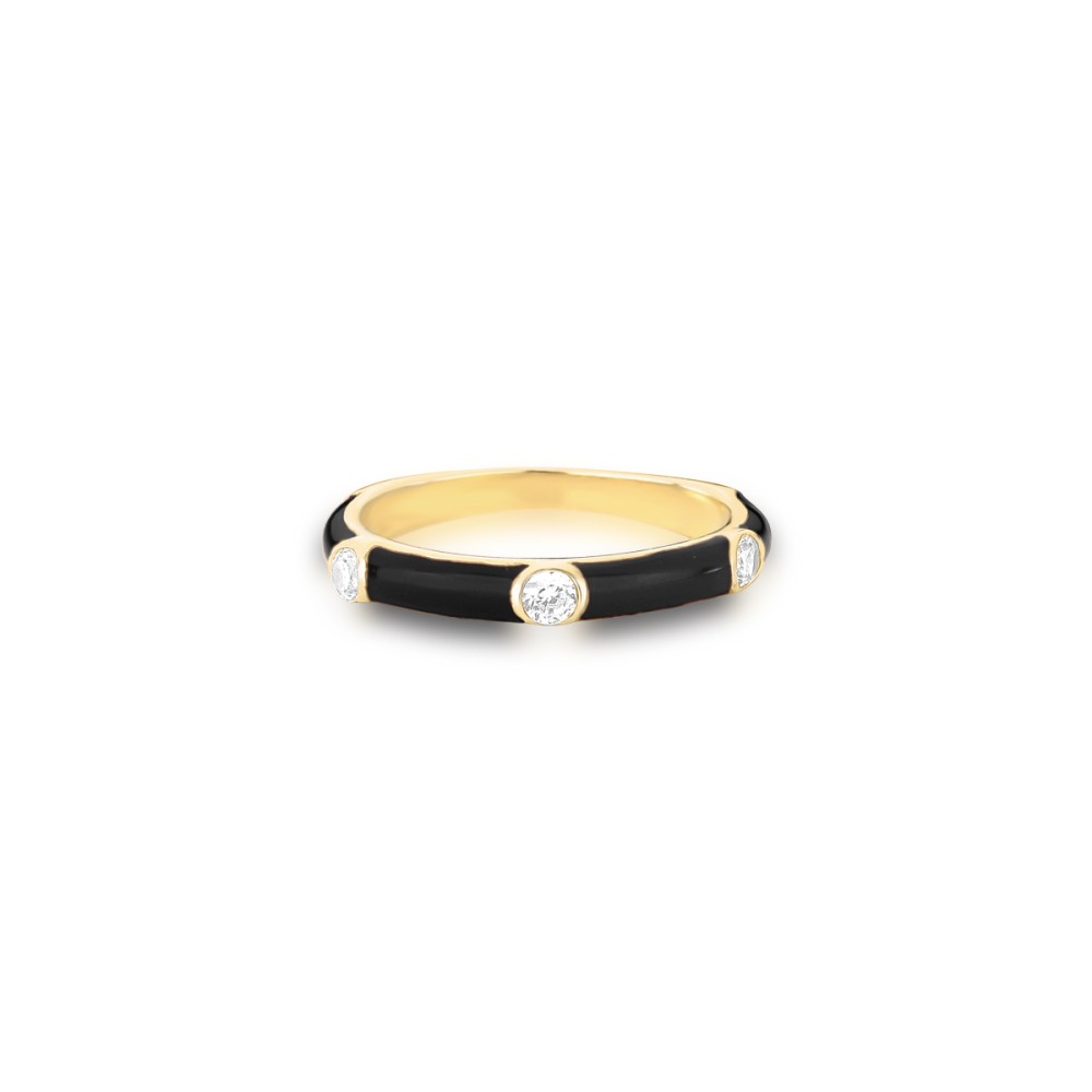 Anel Esmaltado Preto Pontos de Luz Banho de Ouro 18k.