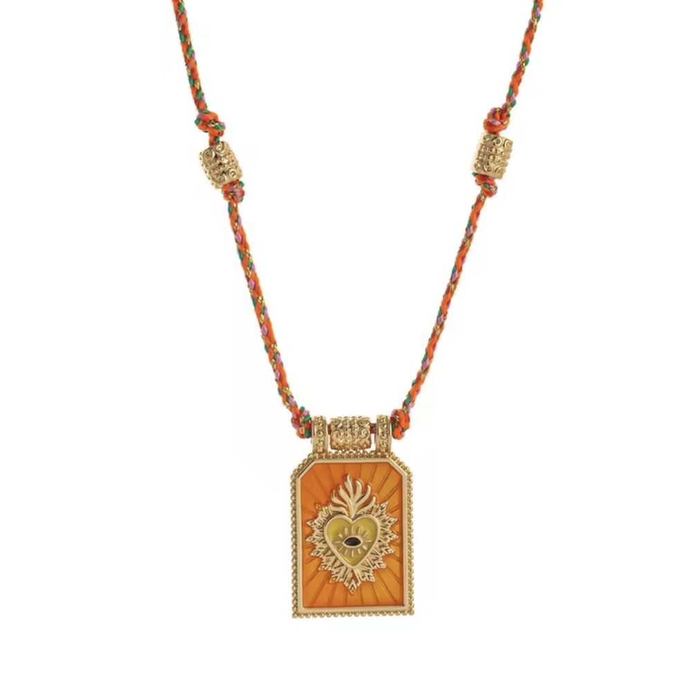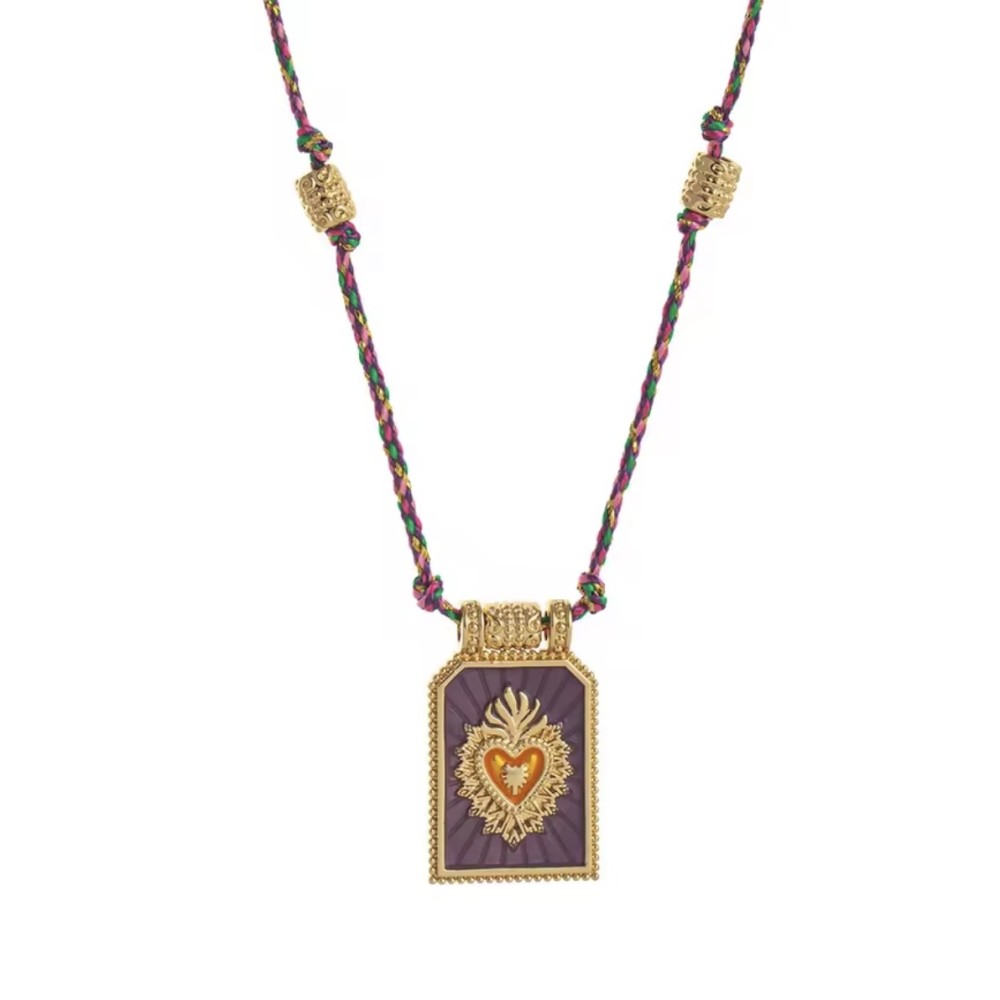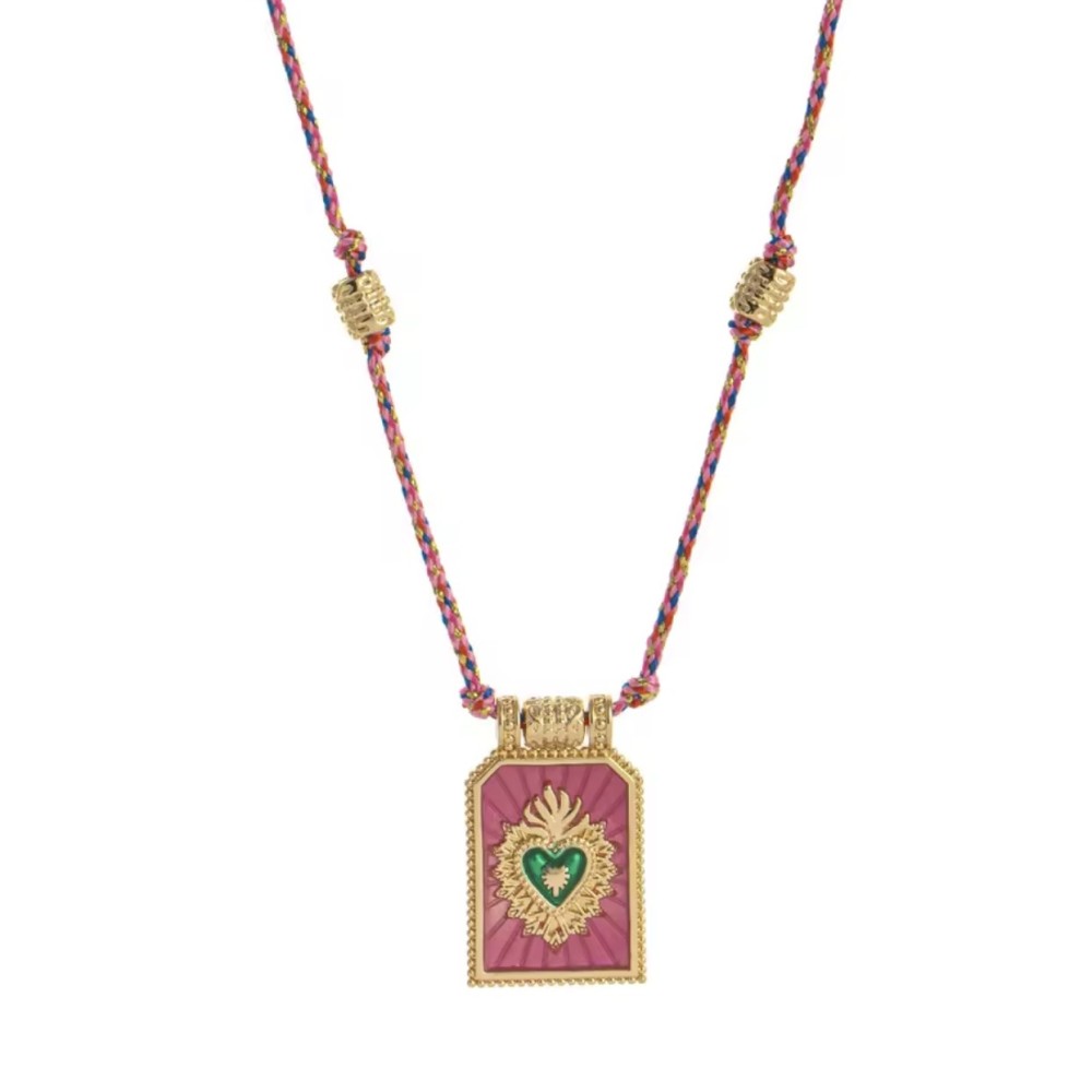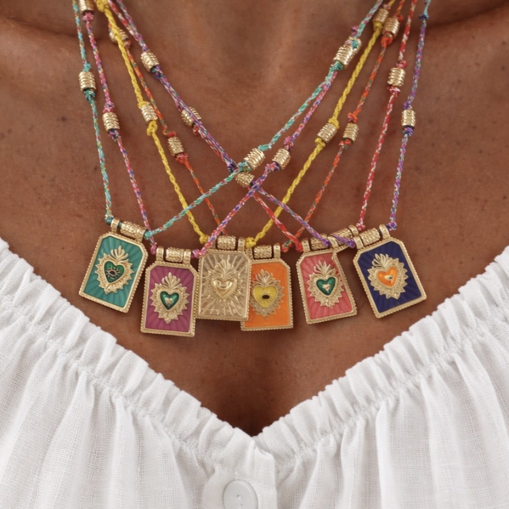 Colar Sagrado Coração Colors Banho de Ouro 18k.