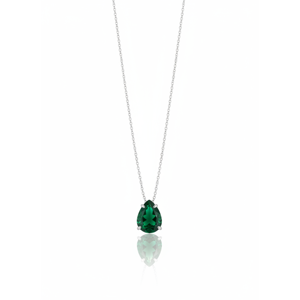 Colar Gota Esmeralda Cravação na Lateral Rodio Branco