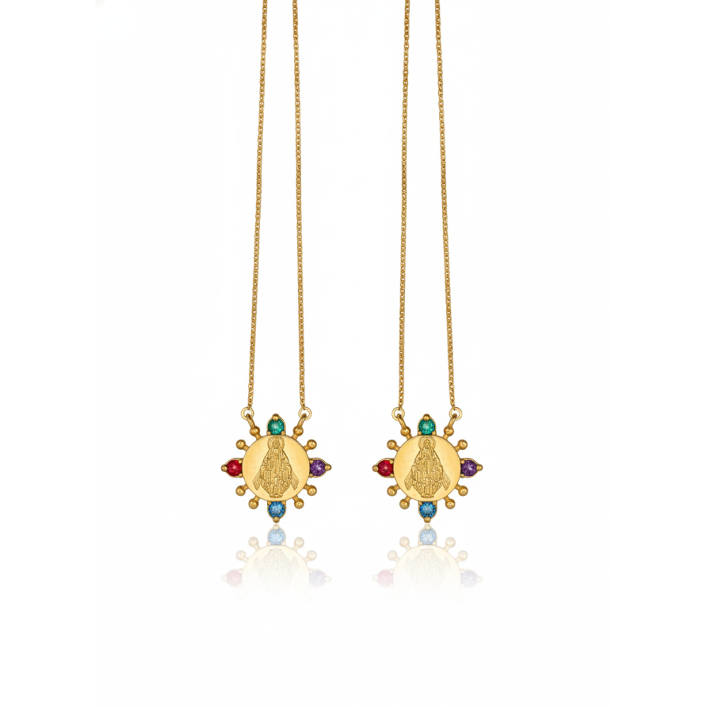 Colar Escapulario Medalha Nossa Senhora Zircônias Coloridas Banho de Ouro 18k