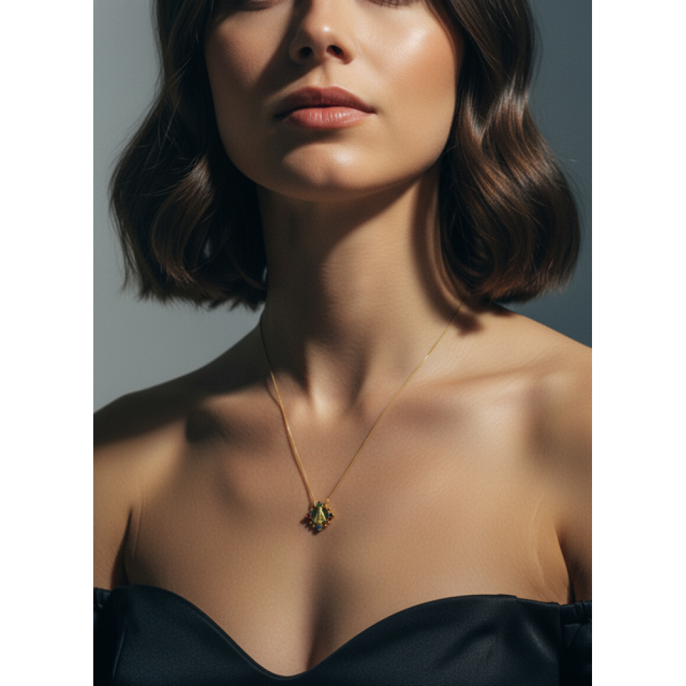 Uma joia que une fé e sofisticação, adicionando um ponto de luz e cor vibrante ao seu visual. Ideal para quem busca proteção com muito estilo.
