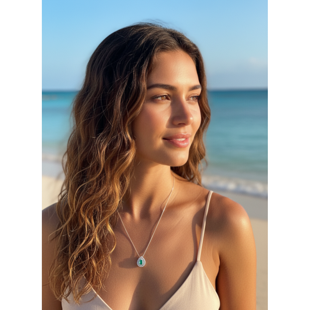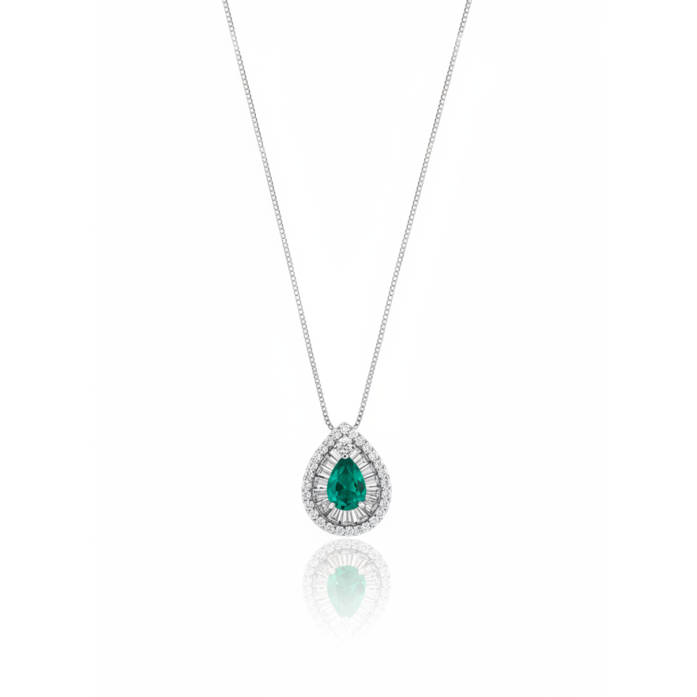 Colar Gota Turmalina com Zirconias Cristais em Volta Ródio Branco.