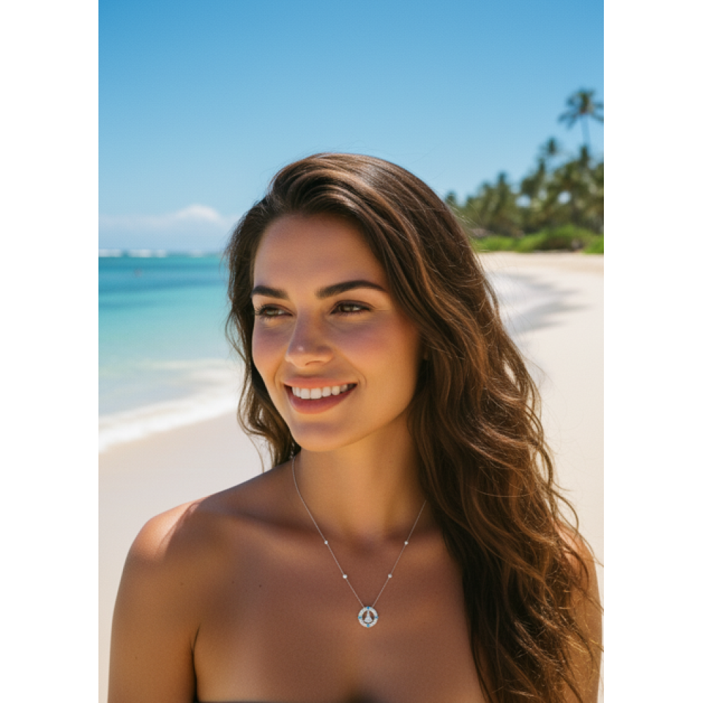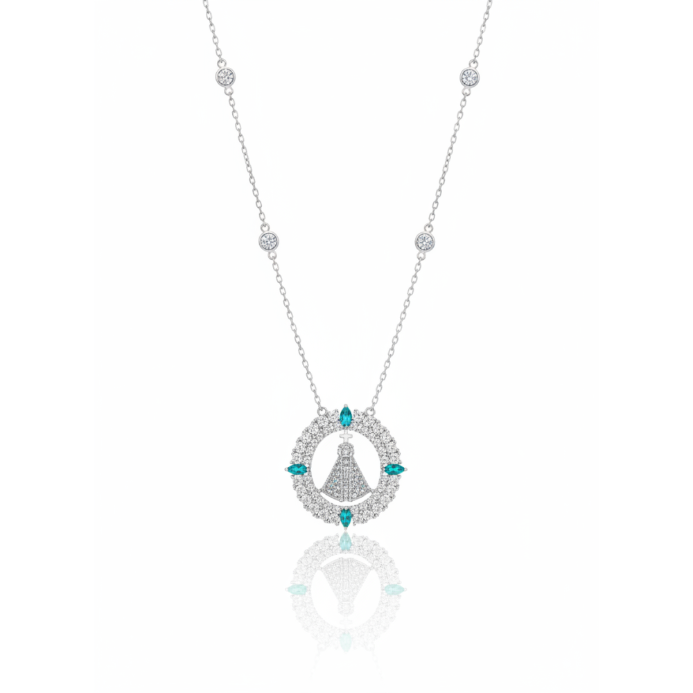 Colar Santa Cravejada Cristal Turmalina Banho de Ródio Branco.