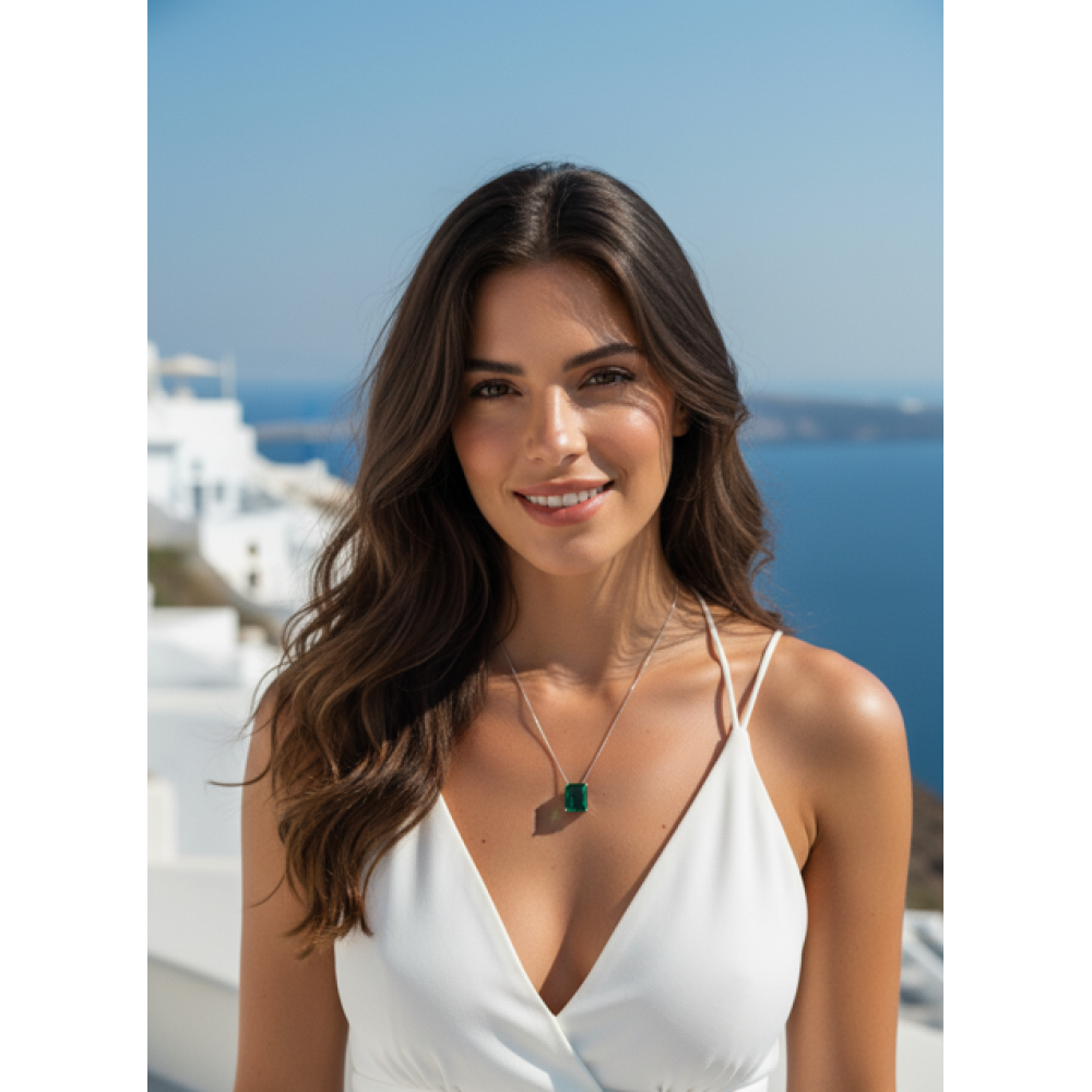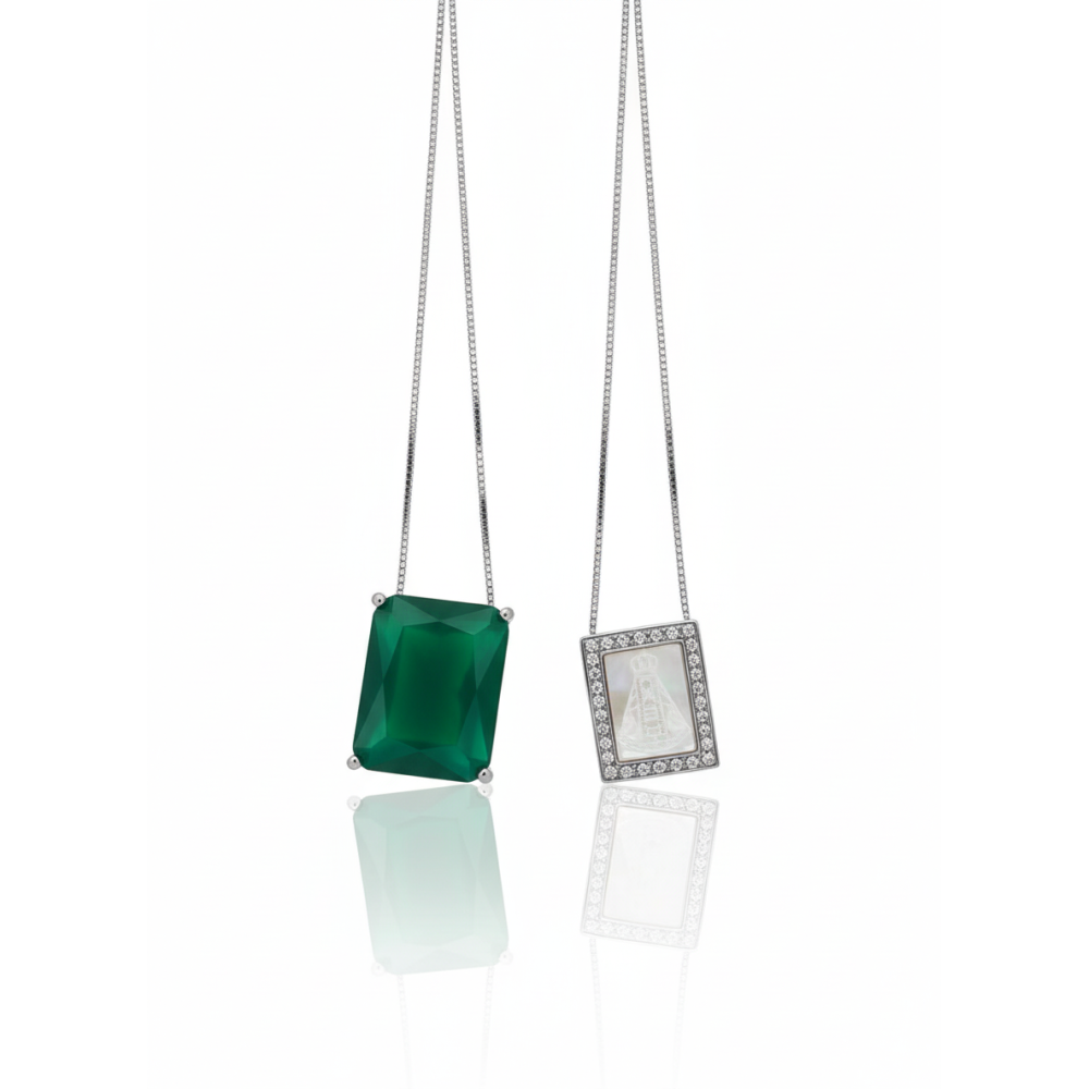 Colar Escapulário Nossa Senhora Esmeralda Ródio Branco.