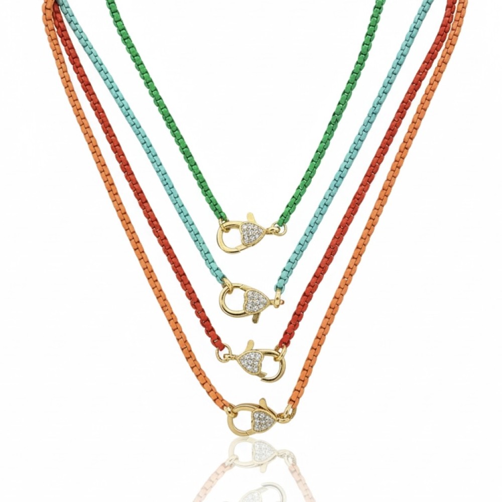Colar Corrente Esmaltada fecho cravejado