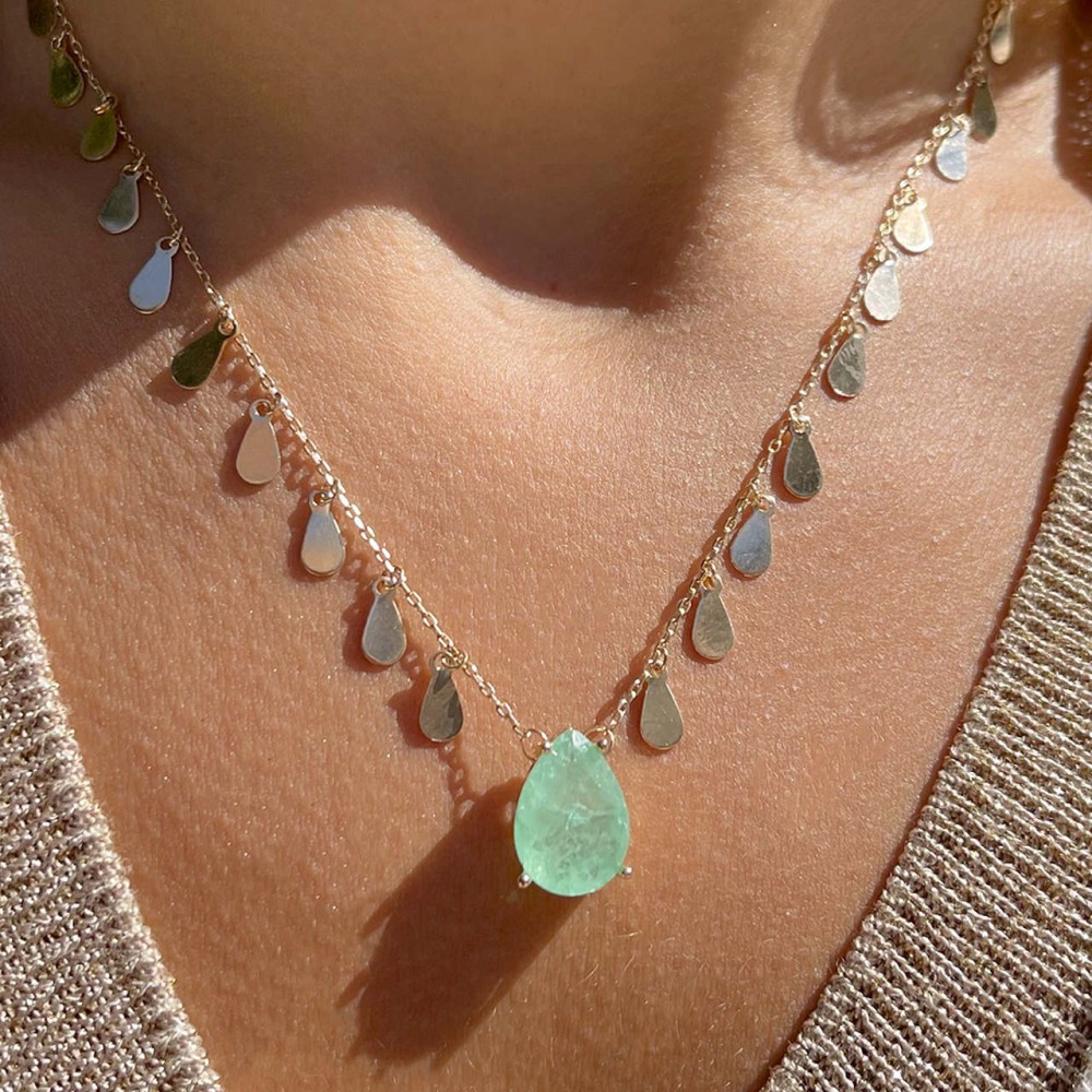 Colar Gota Esmeralda Colombiana Fusion Banho de Ouro 18k.