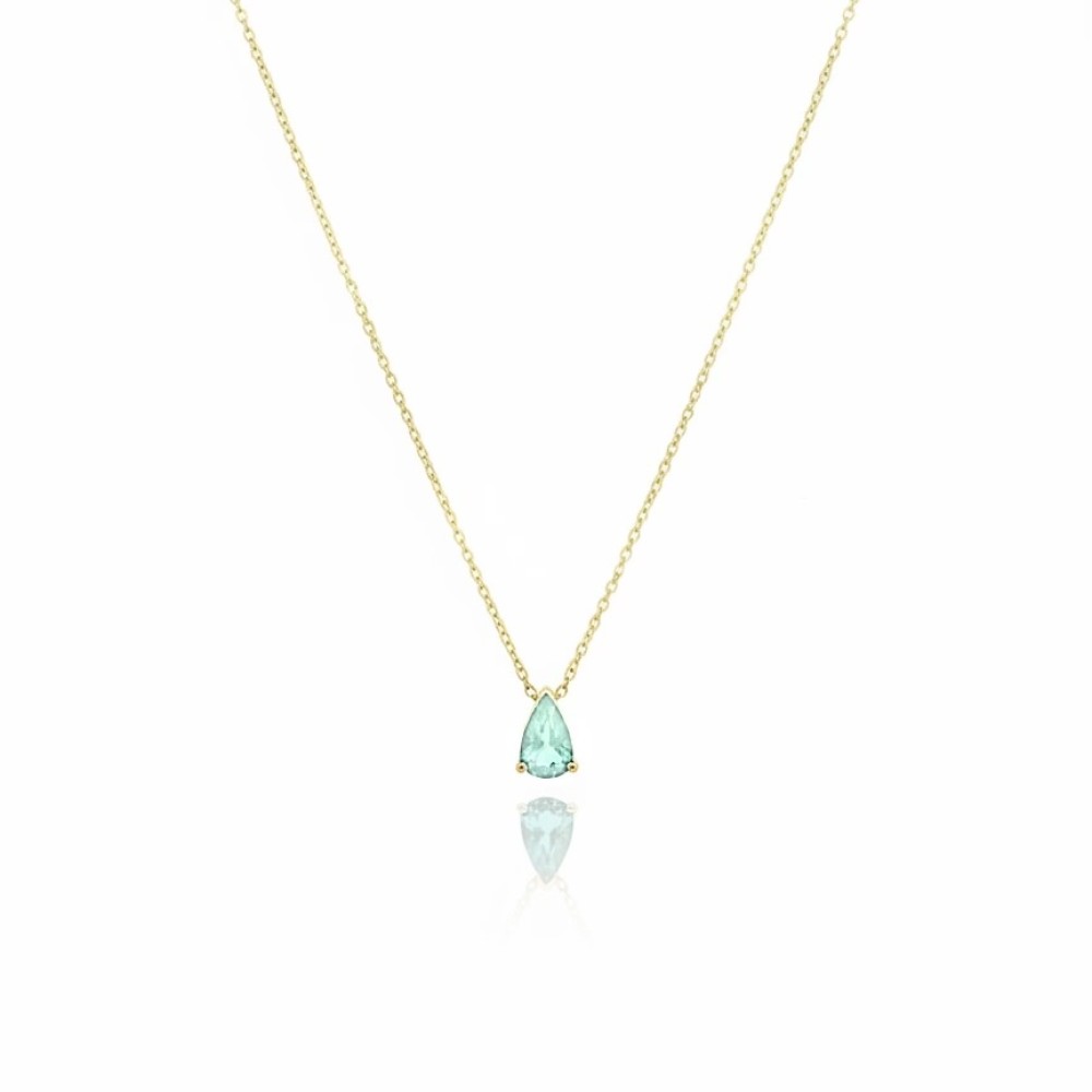Colar Mini Gota Turmalina Banho de Ouro 18k.