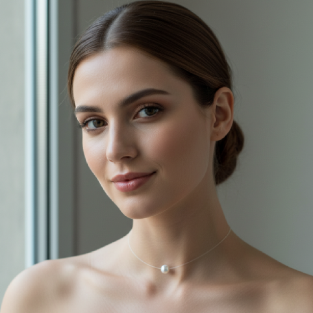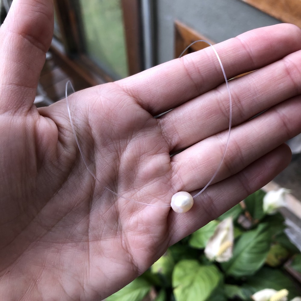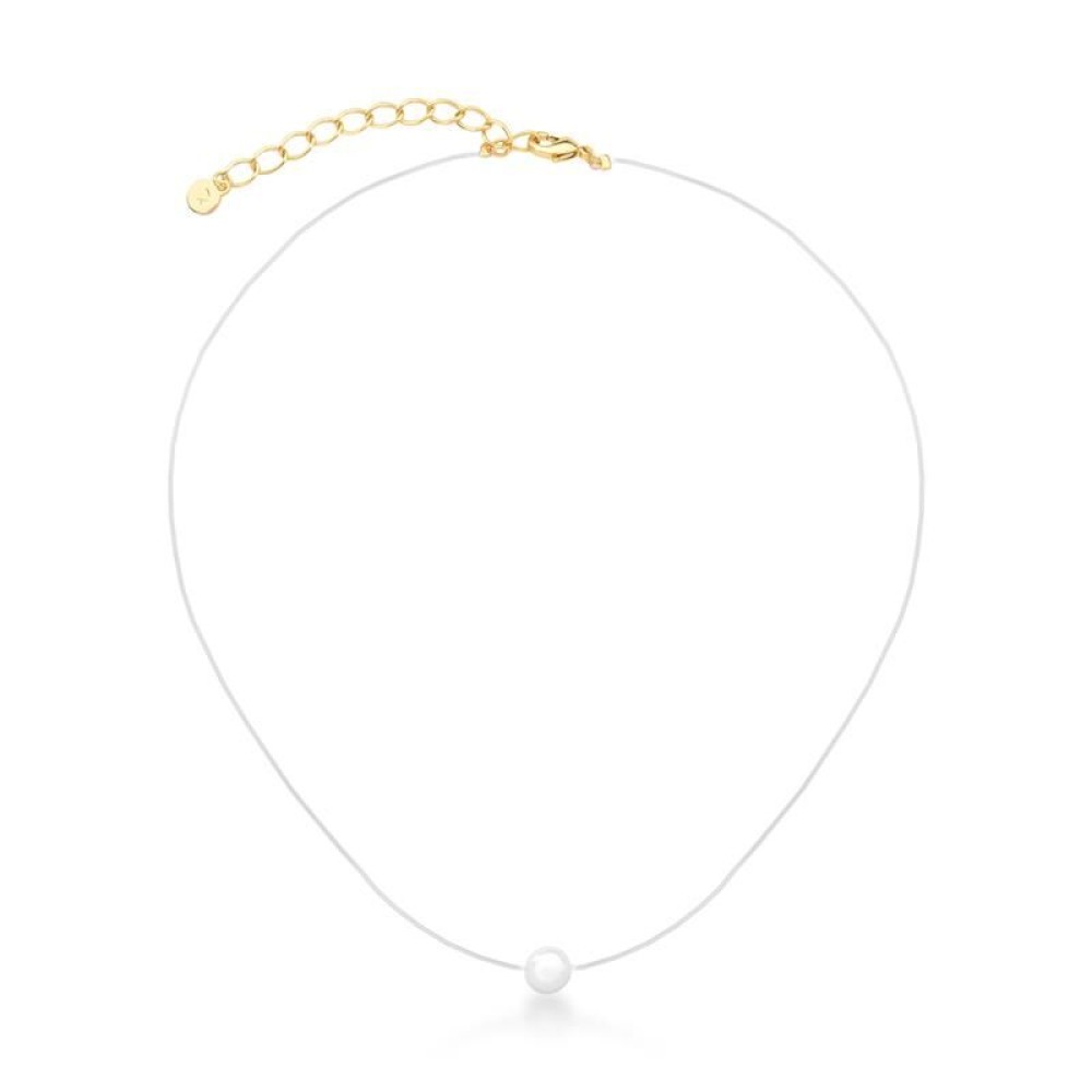 Colar Pérola Natural Fio de Nylon Banho de Ouro 18k.