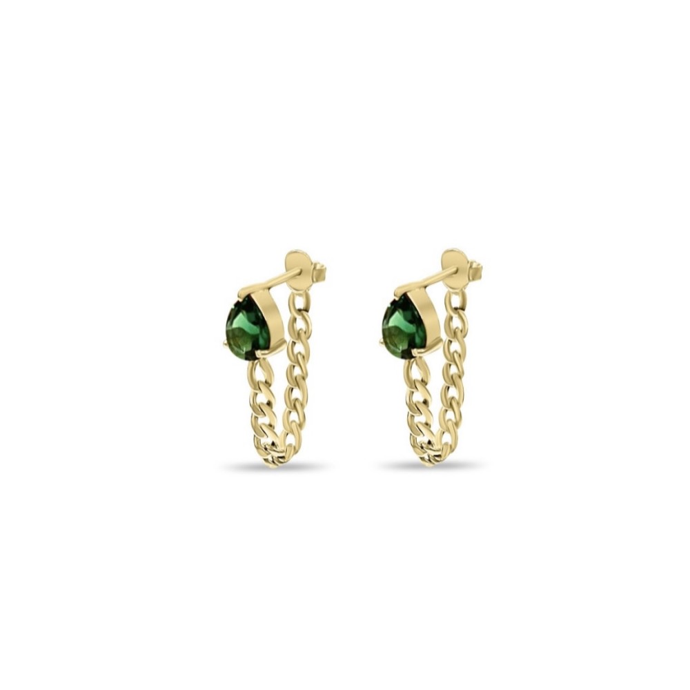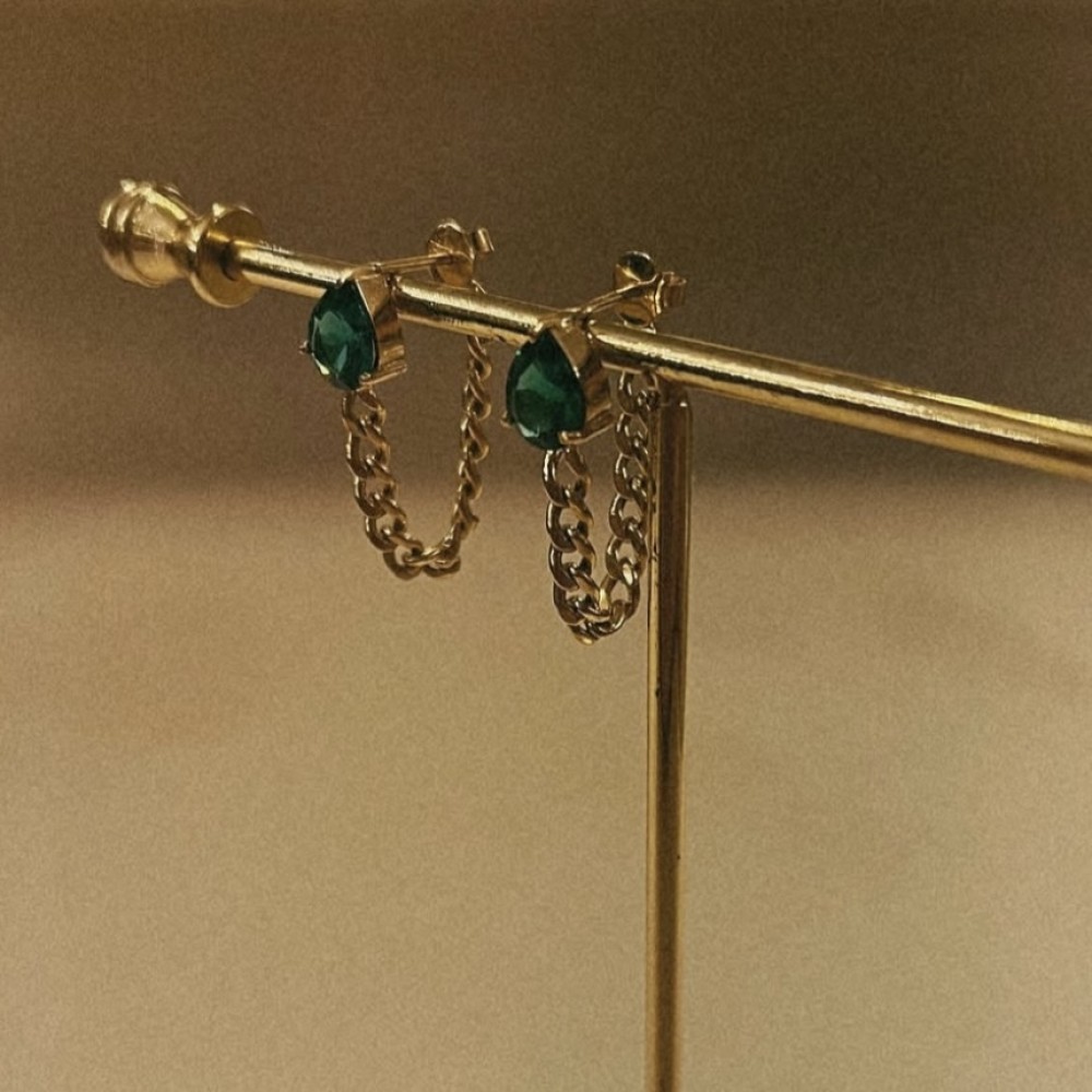 Brinco Gota Esmeralda Corrente Banho de Ouro 18k.