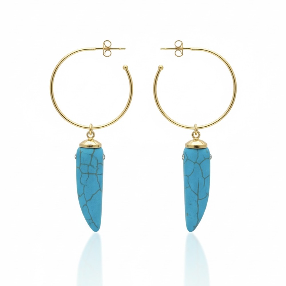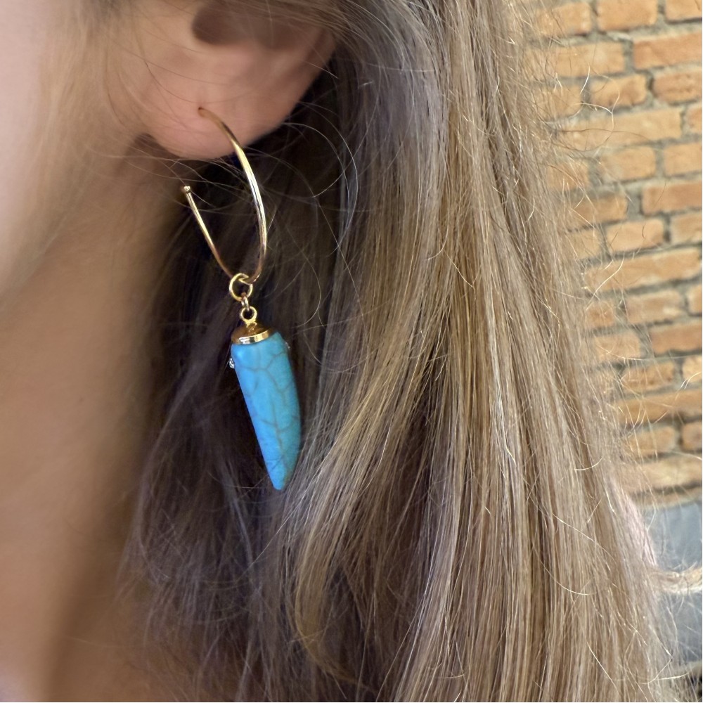Brinco Dente Turquesa Argola Banho de Ouro 18k.