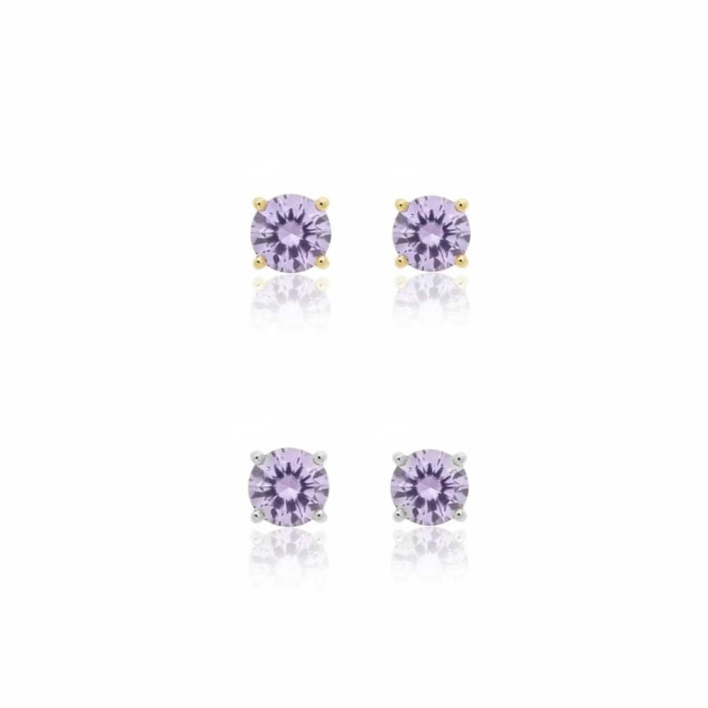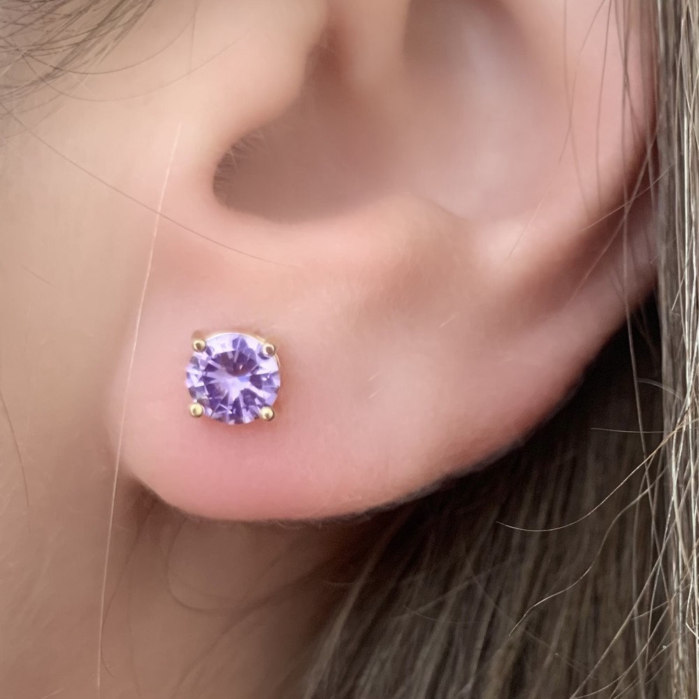 Brinco Ponto de Luz Ametista Banho de Ouro 18k ou Ródio Branco.