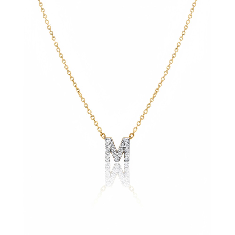 Colar Mini Letra Cravejada Duplo Banho de Ouro 18k + Rodio Branco.