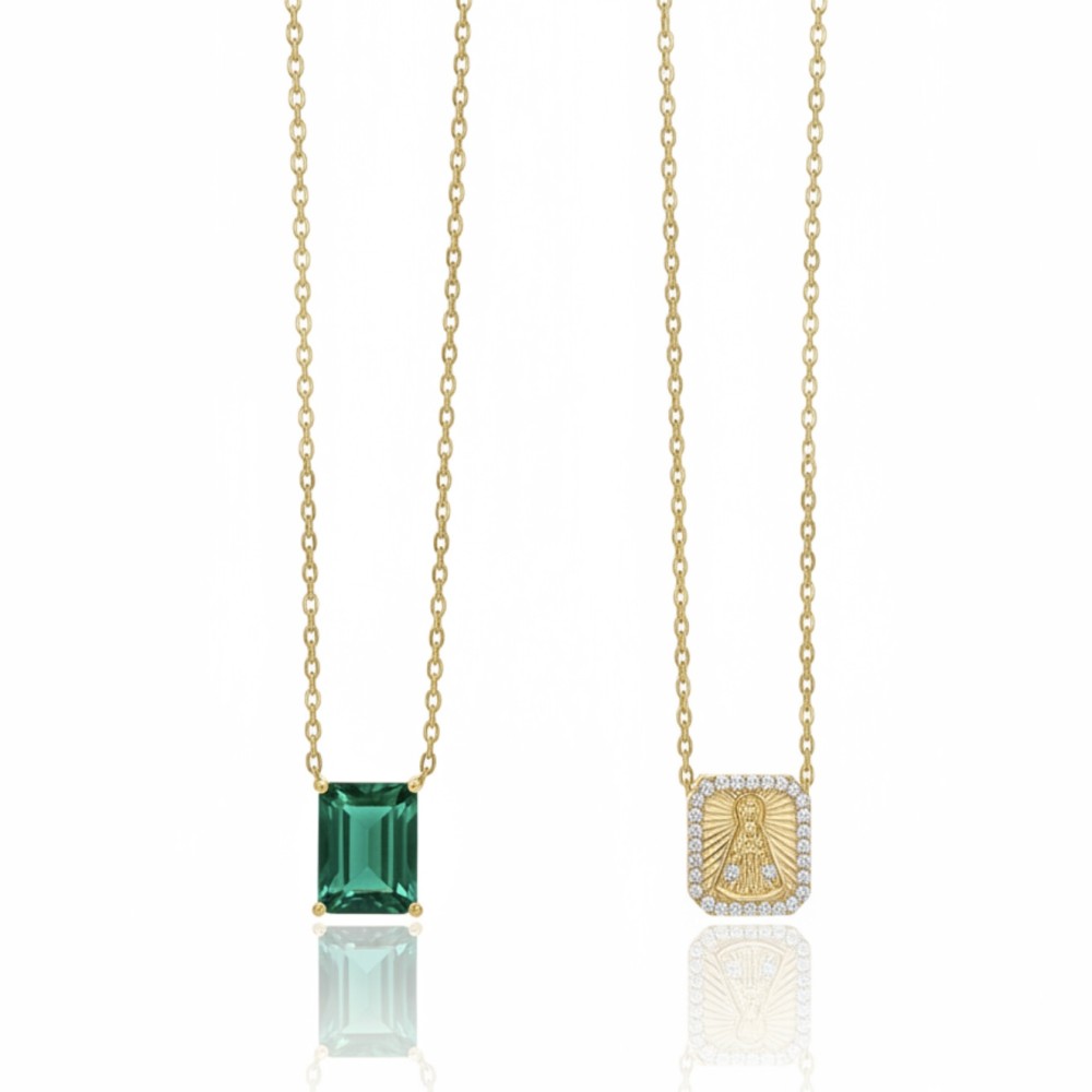 Colar Escapulário Nossa Senhora Aparecida Esmeralda Escura Fusion Banho de Ouro18k.