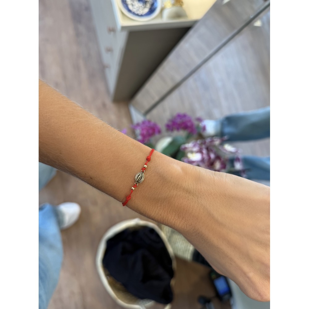 Pulseira Vermelha Nossa Senhora Banho de Ouro 18k.