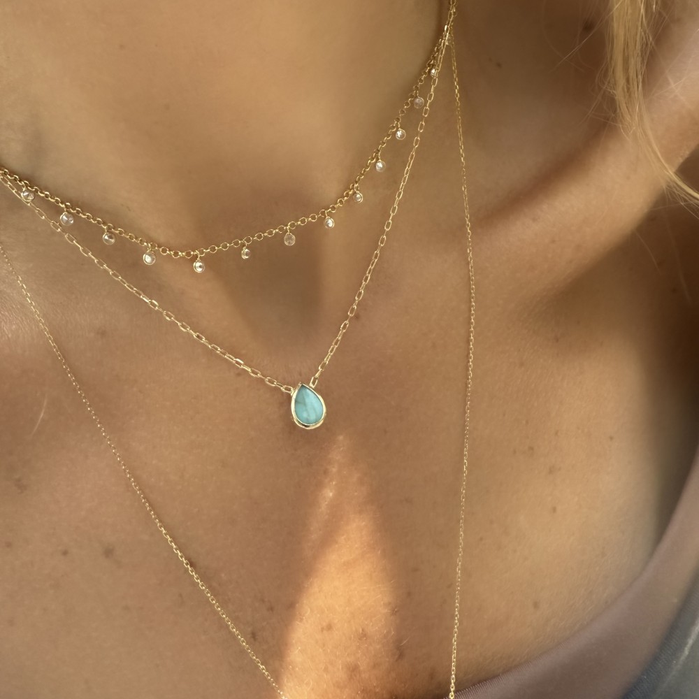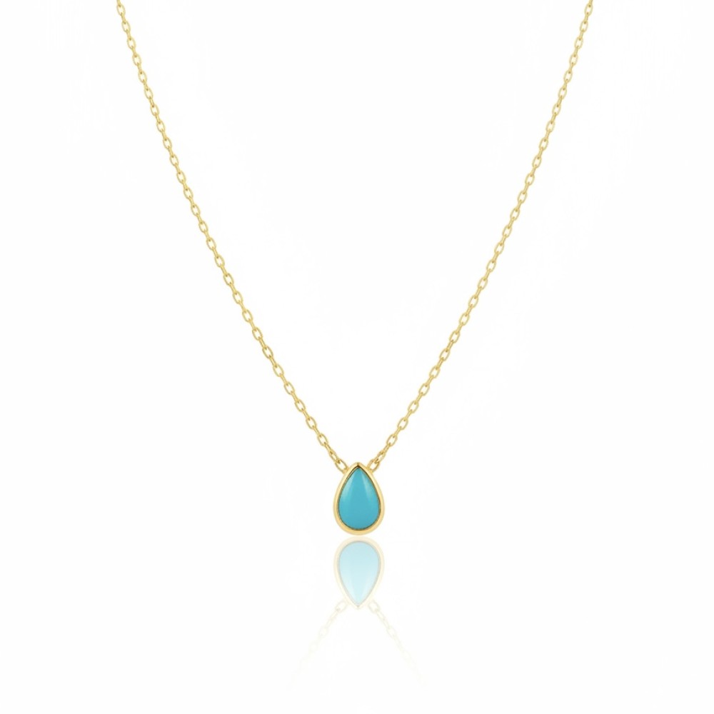 Colar Gota Turquesa Fusion Banho de Ouro 18k.
