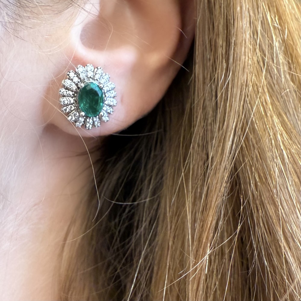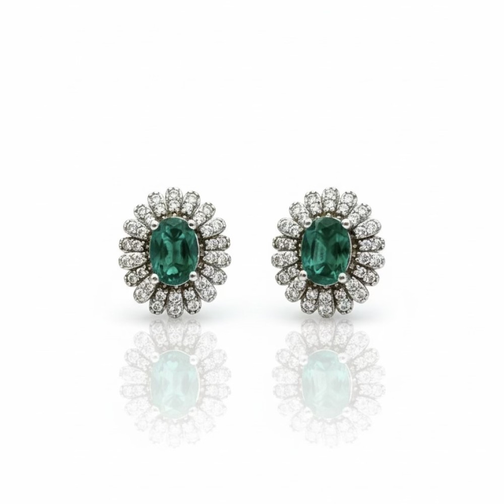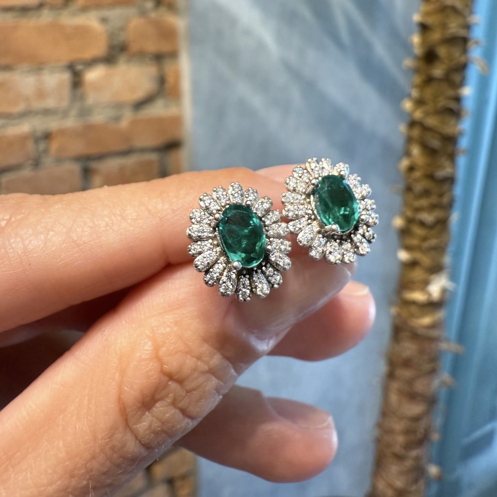 Brinco Esmeralda Prata 925 Ródio Branco.