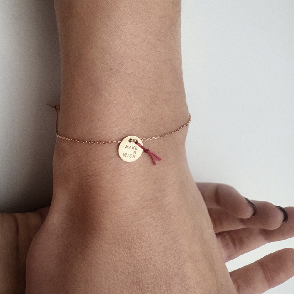 Pulseira Plaquinha Personalizada Fio Vermelha Banho de Ouro 18k
