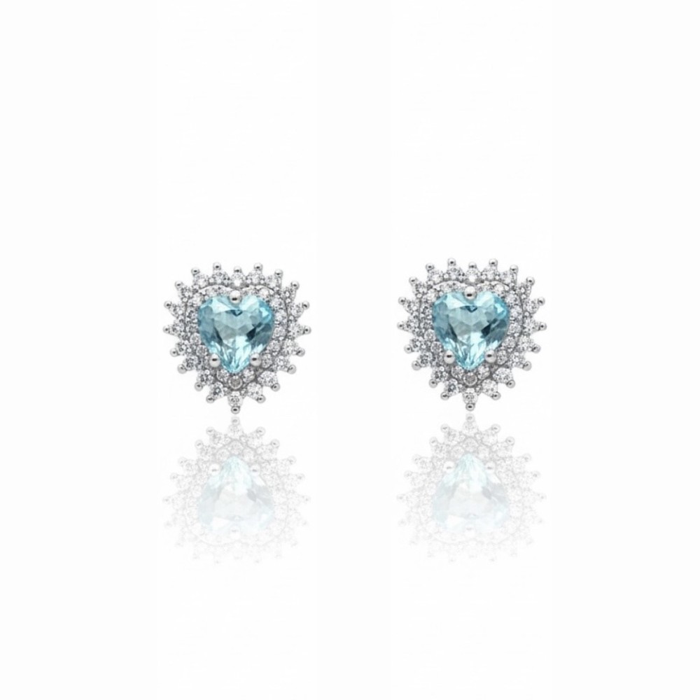 Brinco Coração Agua Marinha Ródio Branco.