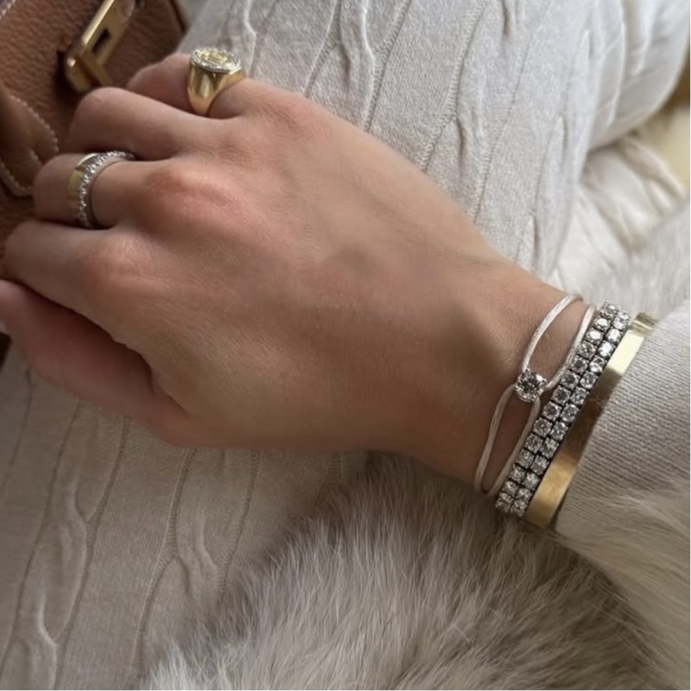 Pulseira Ponto de Luz Fio Champanhe Banho de Ouro 18k ou Ródio Branco.