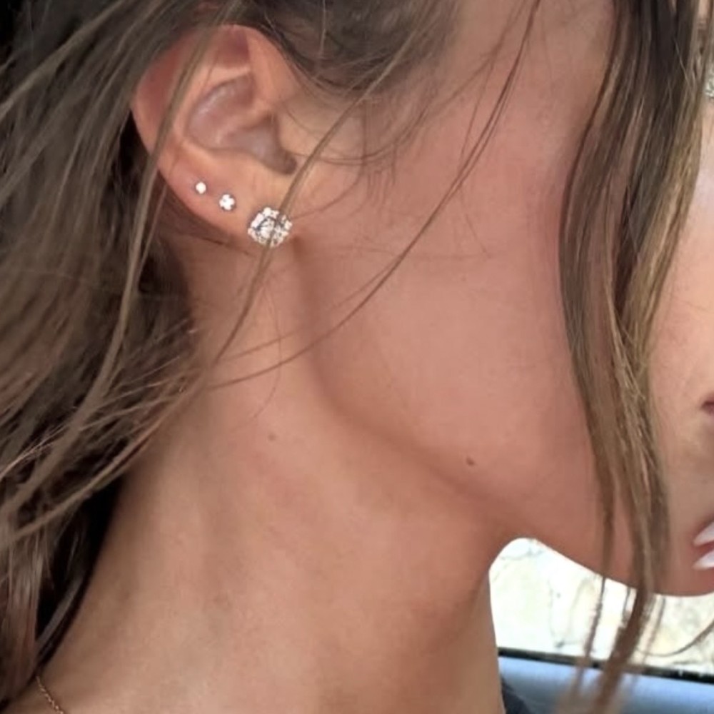 Brinco Quadradinho Cristal Cravejado Banho de Ouro 18k ou Ródio Branco,