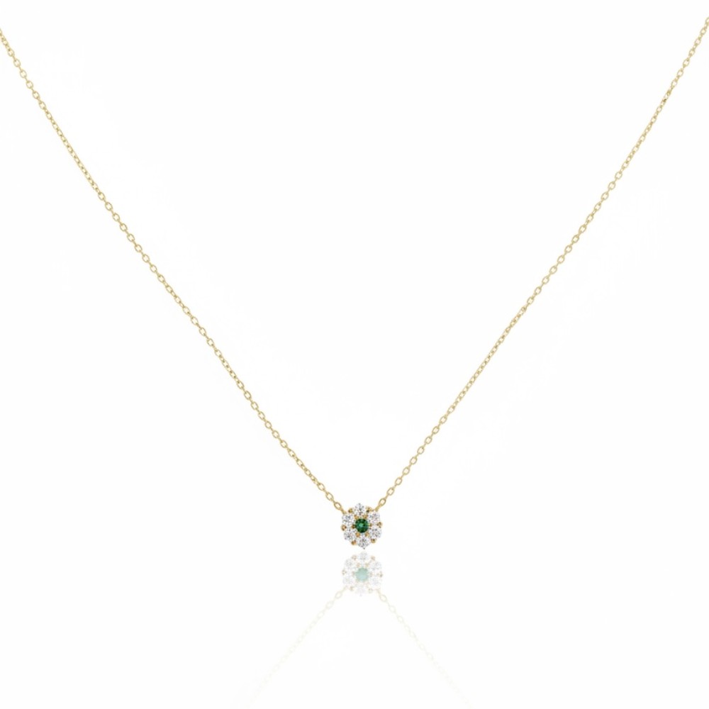 Colar Flor Esmeralda Corrente Ultra Fina Banho de Ouro 18K.