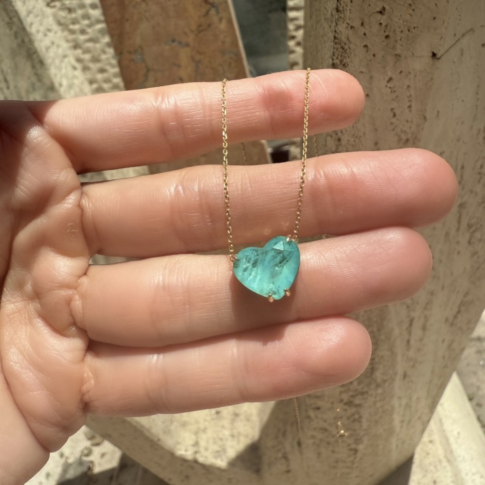 Colar Coração Turmalina Fusion Fusion Banho de Ouro 18k.